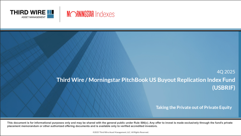 The Third Wire / Morningstar PitchBook US Buyout Replication Index Fund1 is a private investment vehicle based on the Morningstar PitchBook US Buyout Replication Index.