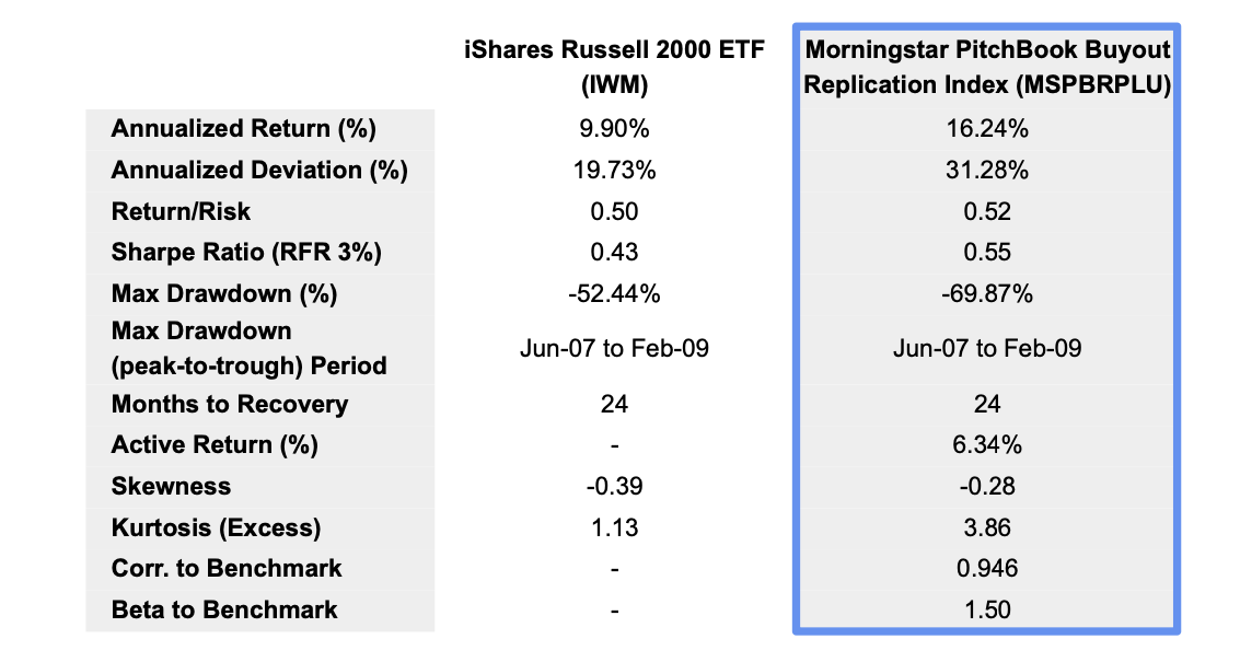 A: The fund is intended for accredited investors and institutions seeking exposure to the Morningstar PitchBook US Buyout Replication Index which was designed to capture the key characteristics of private equity buyout investing by tracking publicly traded small- and mid-cap stocks that resemble companies in private equity buyout funds.