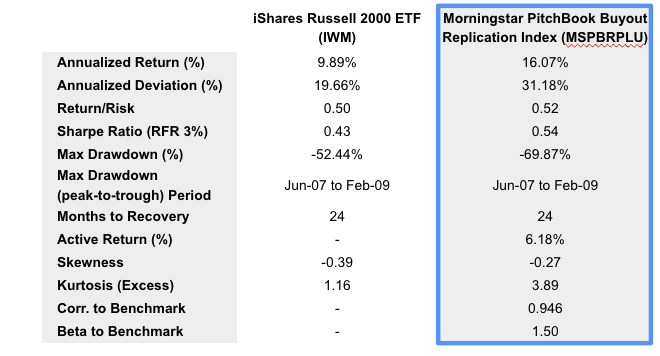 A: The fund is intended for accredited investors and institutions seeking exposure to the Morningstar PitchBook US Buyout Replication Index which was designed to capture the key characteristics of private equity buyout investing by tracking publicly traded small- and mid-cap stocks that resemble companies in private equity buyout funds.
